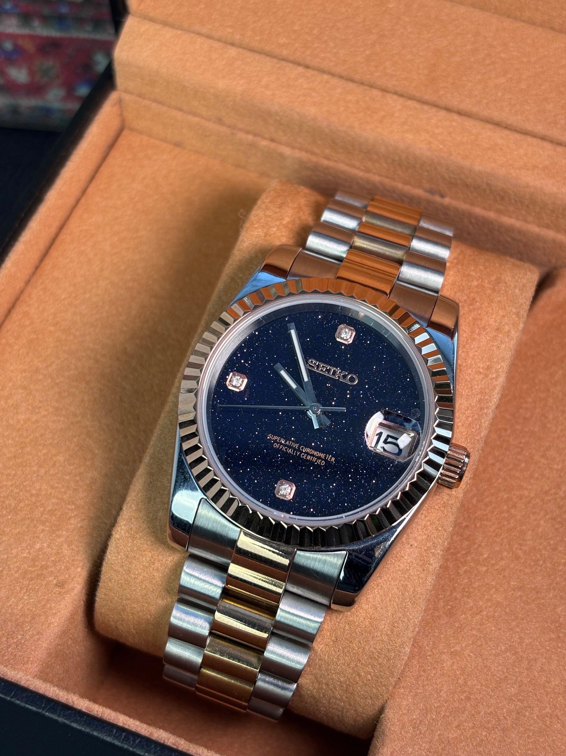 İkonik Datejust tasarımından ilham alan ve prestijli Seiko NH35 otomatik mekanizma ile donatılan bu Seiko Mod modeli, zarafet ile günlük kullanım konforunu bir araya getirir.
