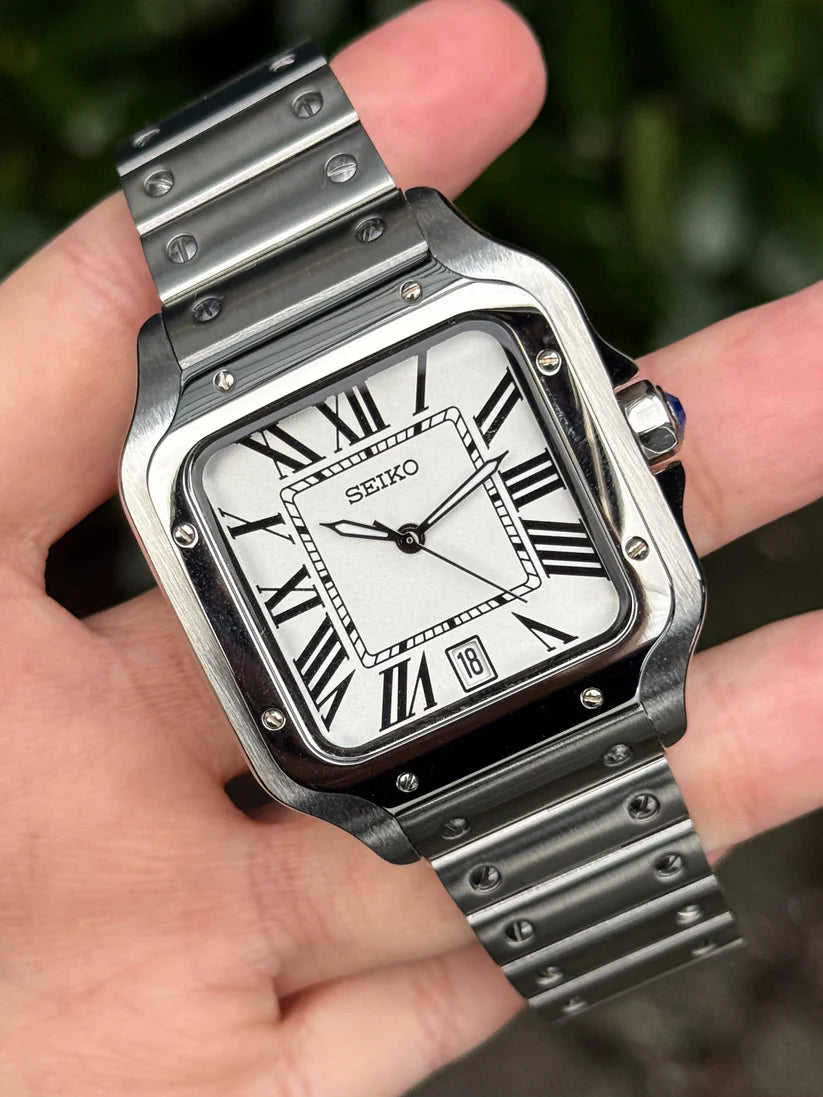 İkonik Santos tasarımından ilham alan ve prestijli Seiko NH35 otomatik mekanizma ile donatılan bu model, şıklık ile günlük kullanım konforunu bir araya getirir.